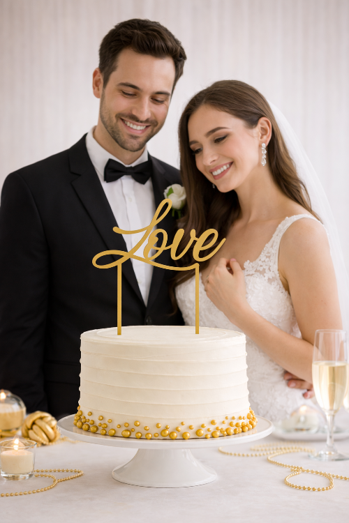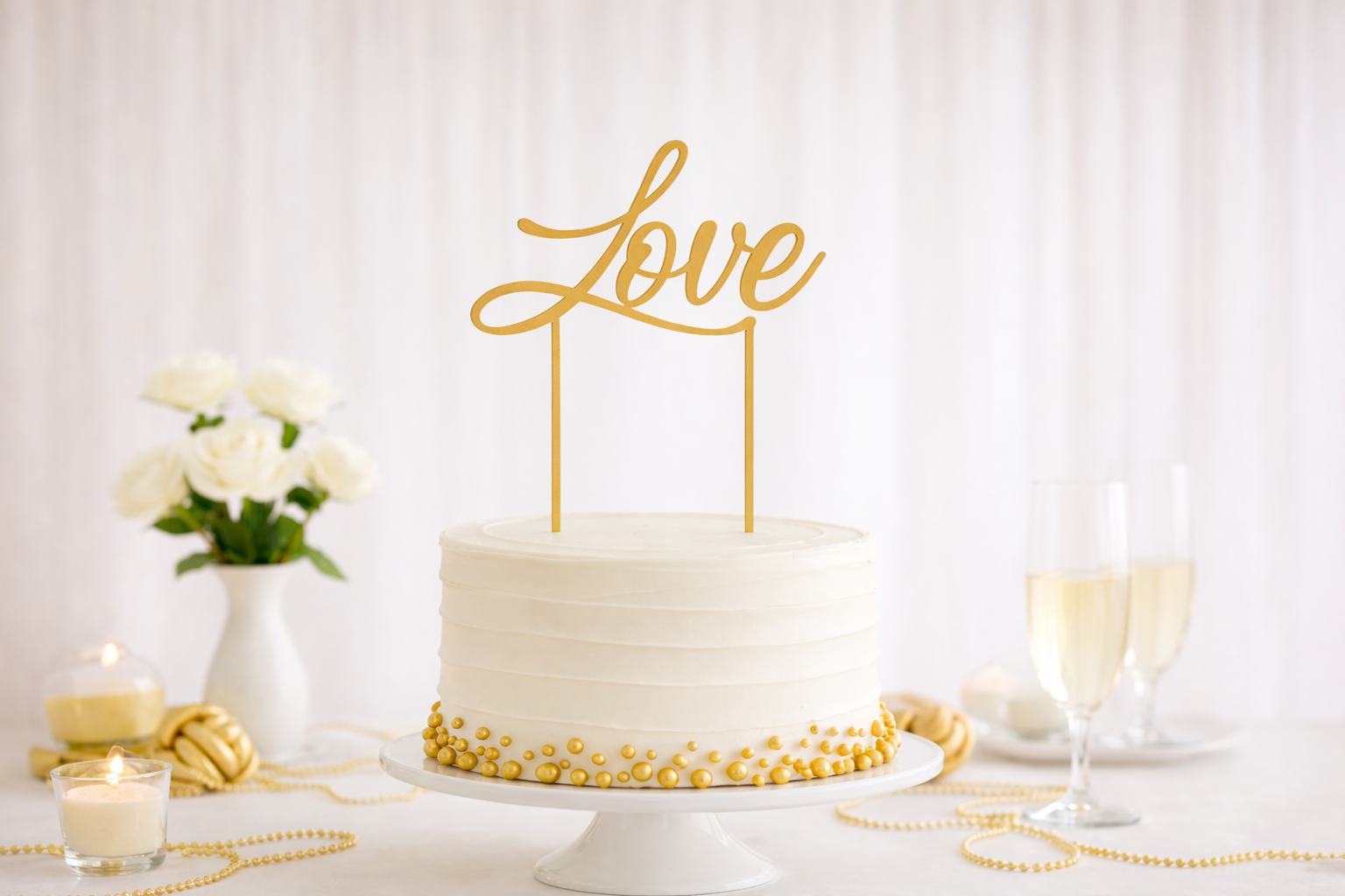 - Romantisch & sierlijk: De Love-taarttopper "Vier de Liefde" straalt verbondenheid uit met elegante, vloeiende lijnen.